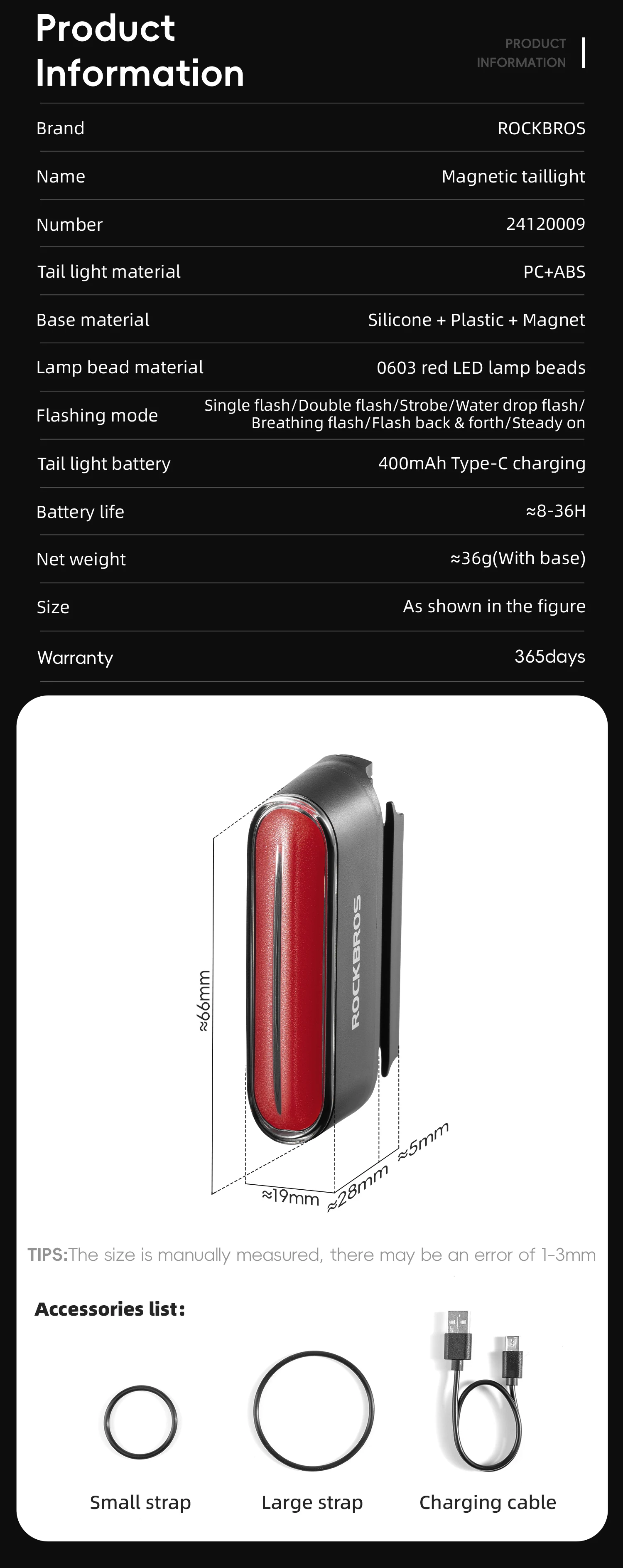 Bicycle Taillight, Magnetic Bicycle Light, IPX6 Waterproof, Type-C Rechargeable, Magnetic Mounting