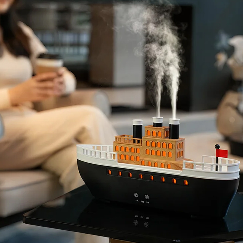 Boat-Shaped Air Humidifier With Colored Flame Effect